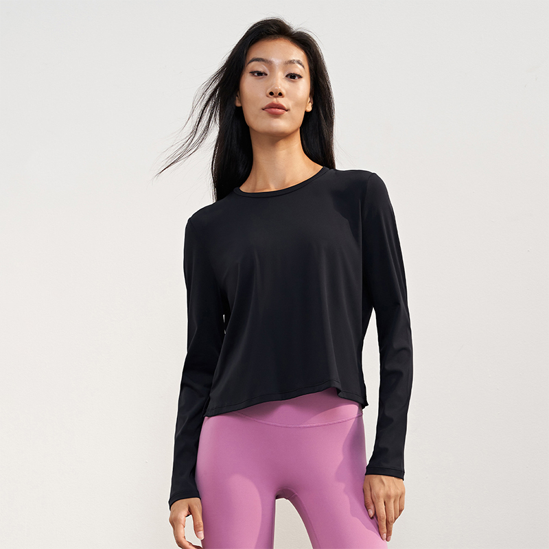 Wholesale Light Nude Round Neck Loose Yoga T-shirt Short Split Yoga Long Sleeve Loose Casual Versatile Long Sleeve Top